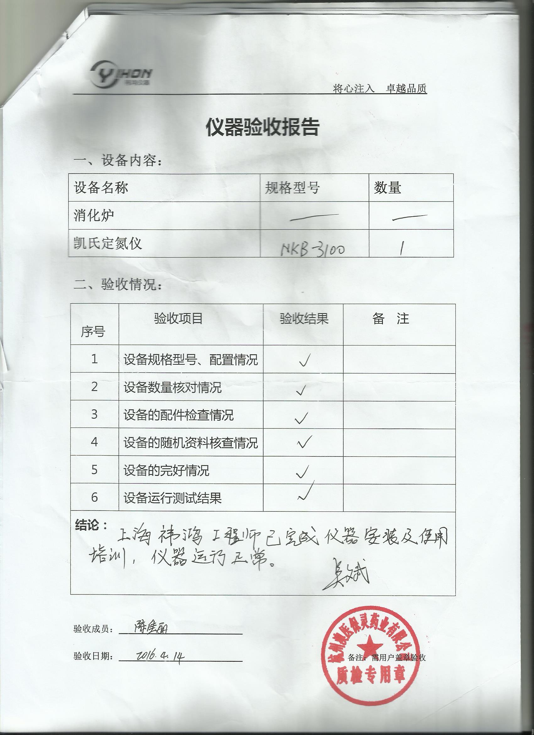 感謝您與祎鴻牽手,我們將不負(fù)眾望,更好的服務(wù)給予我們每一次機(jī)會(huì)的您。下圖是杭州保靈集團(tuán)質(zhì)檢部驗(yàn)收?qǐng)?bào)告。