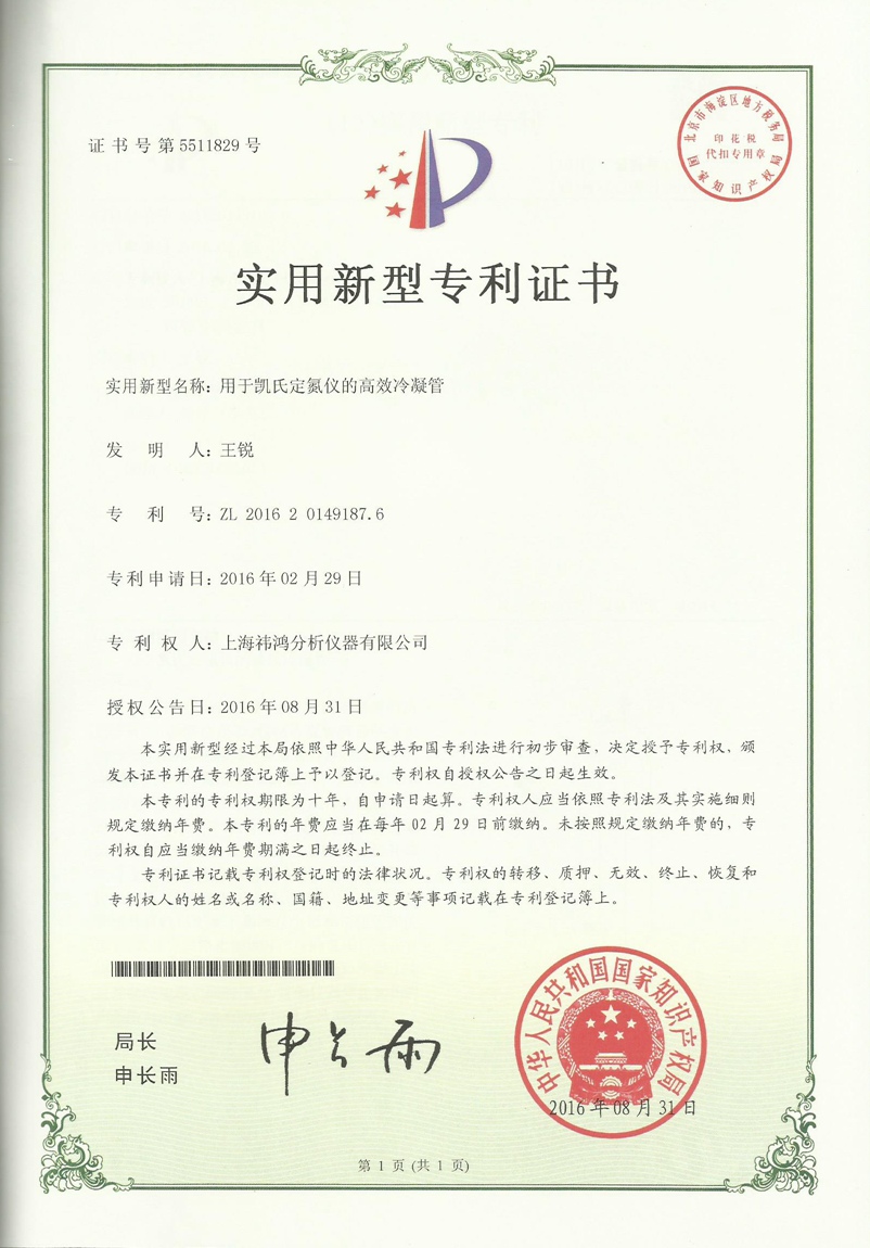 熱烈祝賀上海祎鴻凱氏定氮儀再添兩項技術(shù)專利