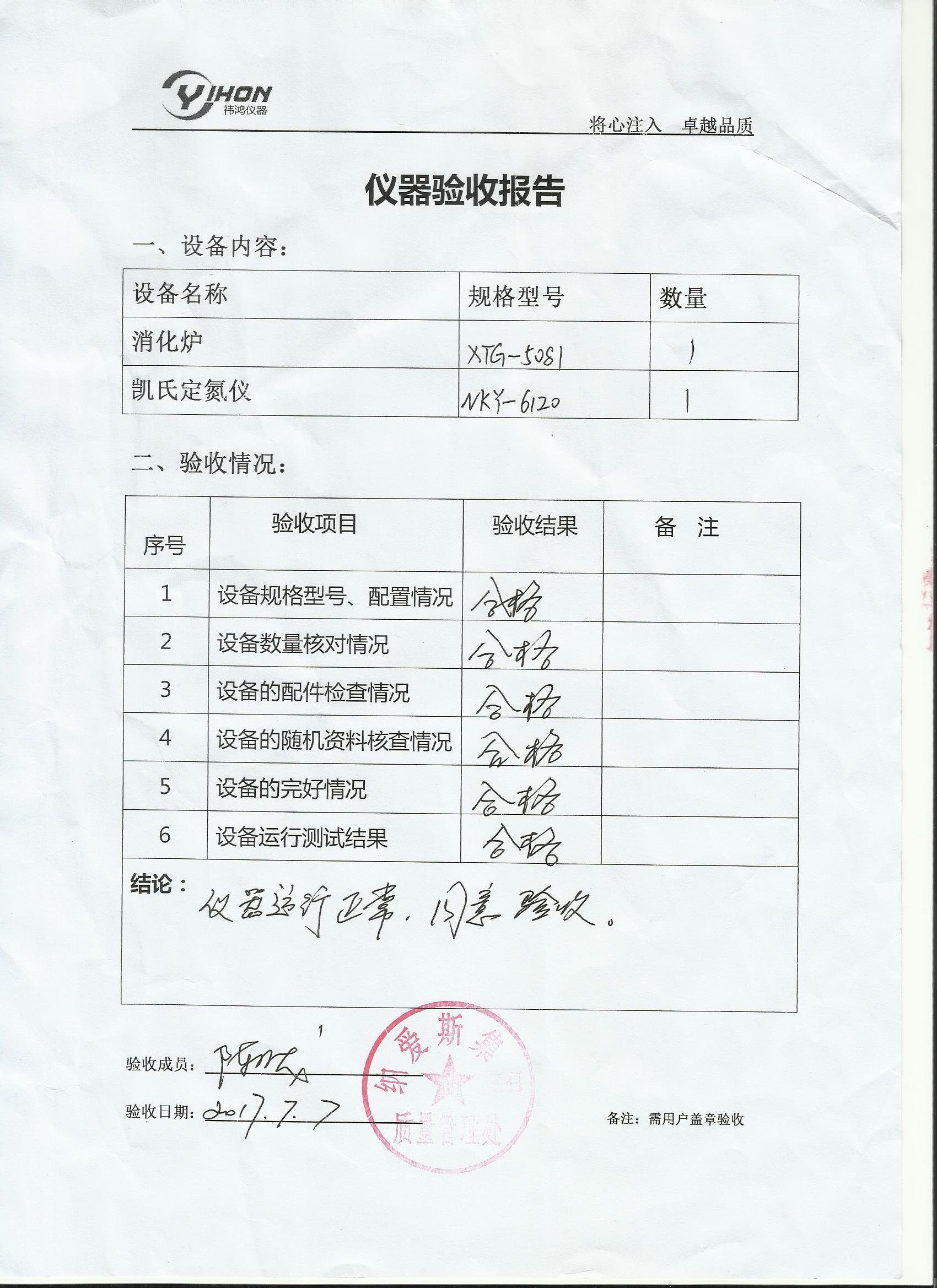 全自動凱氏定氮儀 紅外消解儀 設備驗收報告